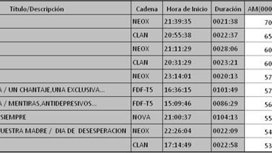 Los 10 programas más vistos del jueves en la TDT