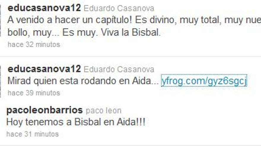 “¡Hoy tenemos a Bisbal en Aída!”, ha comentado León en esta red social. “Ha venido a hacer un capítulo. Es divino, muy total, muy nuestro rollo bollo, muy… Es muy. Viva la Bisbal”, ha añadido Casanova, quien interpreta a Fidel.