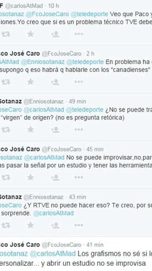“En TVE ya son conscientes de la falta de rótulo con tiempo y resultado. Van a solucionar”, declaró Paco Grande. También Francisco José Caro, que ha debatido en Twitter con varios usuarios.