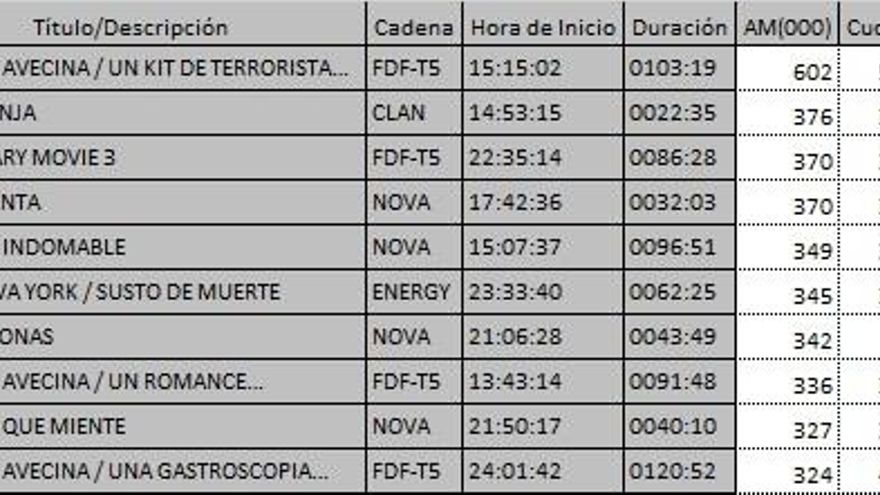 Los 10 programas más vistos del viernes en la TDT