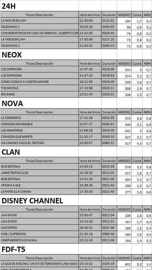 Audiencias completas nuevos canales de la TDT