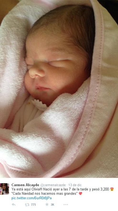 Carmen Alcayde da a luz a su tercera hija y muestra la foto en Twitter