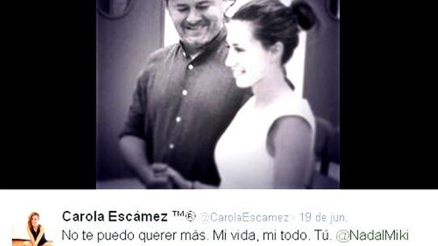 Por su parte, Carola Escámez solo ha publicado en las redes sociales esta foto y divertido mensaje de su boda con Miki Nadal: