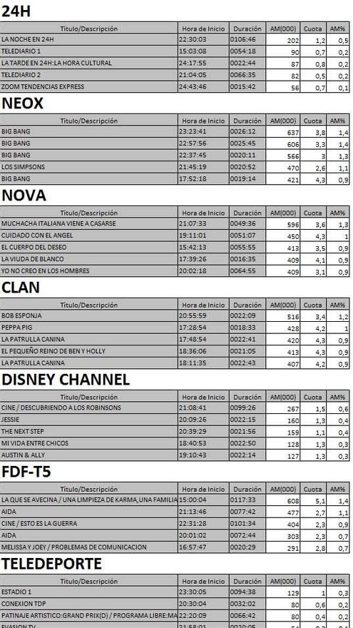 Top 5 programas por cadenas del jueves en la TDT