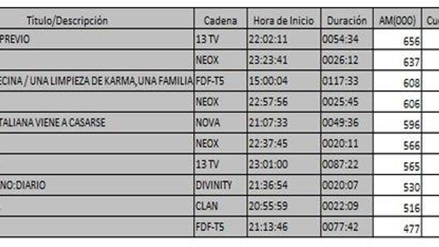 Los 10 programas más vistos del jueves en la TDT