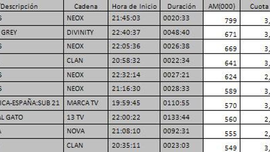 Los 10 programas más vistos del día en la TDT