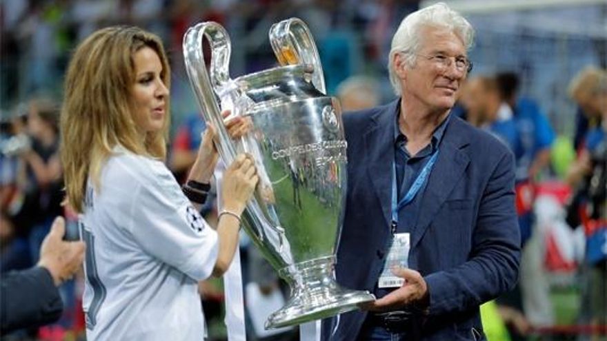 Richard Gere y su pareja Alejandra Silva fueron algunos de los famosos espectadores de la final en el estadio de San Siro. El actor de 'Pretty Woman' ya había viajado con los jugadores del Real Madrid rumbo a Milán el pasado jueves y había presenciado los entrenamientos de los de Zinedine Zidane, y ya decidido el encuentro, no quiso perder la oportunidad de acercarse a la Copa del Madrid.