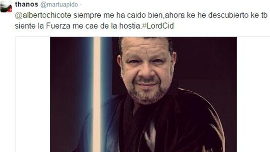 Además, en las últimas horas, Chicote seguía celebrándolo, con el entusiasmo añadido de ver el avance de 'Star Wars VII', saga de la que es seguidor. Muchos seguidores le mandaron fotomontajes de él caracterizado y con espada láser.