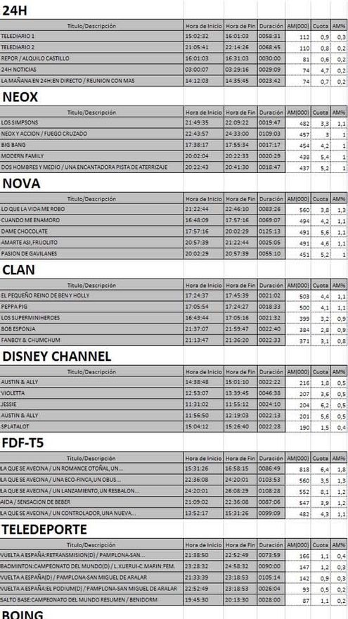 Top 5 programas por cadenas