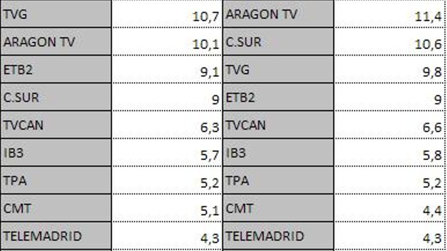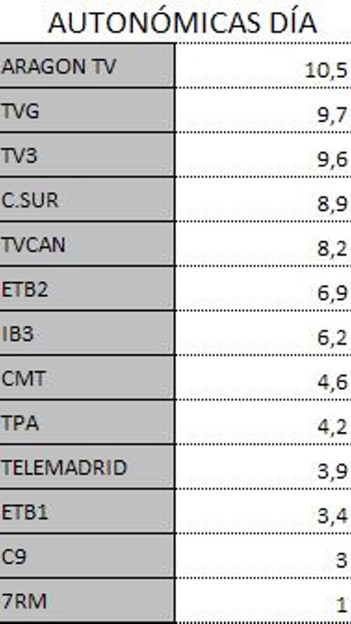 Audiencias autonómicas sábado 13 de abril