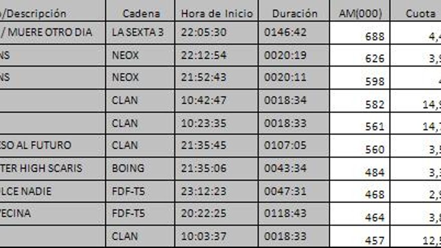Los 10 programas más vistos del día en la TDT
