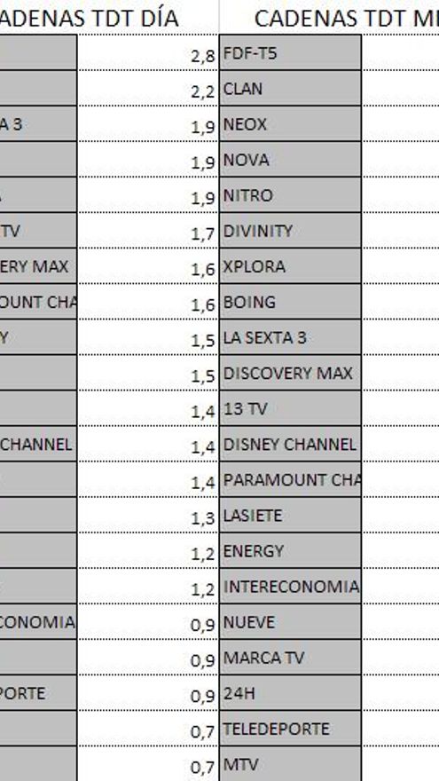 Audiencias TDT y Forta