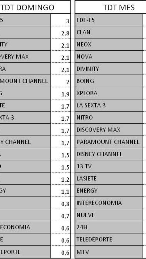 Audiencias TDT del domingo 20 de octubre