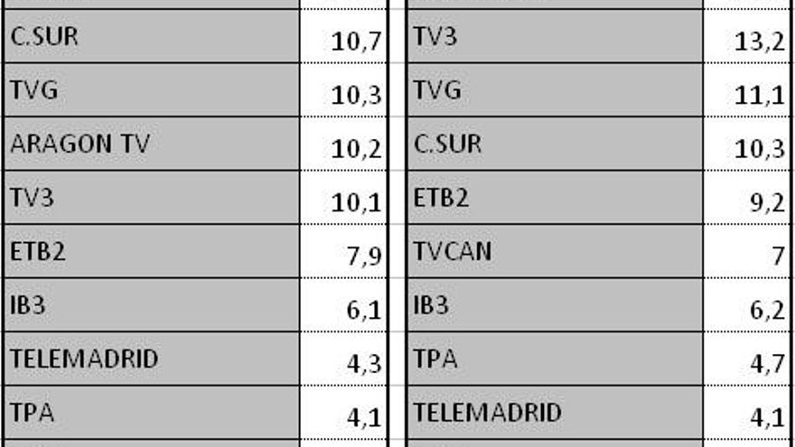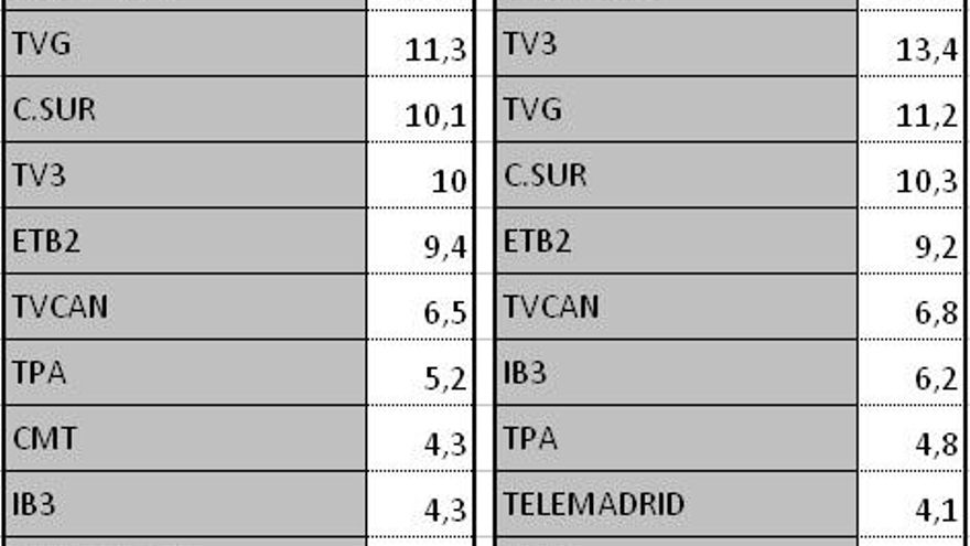 Audiencias autonómicas del domingo 20 de octubre