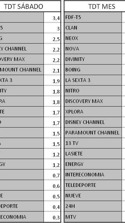 Audiencias TDT y Forta del fin de semana