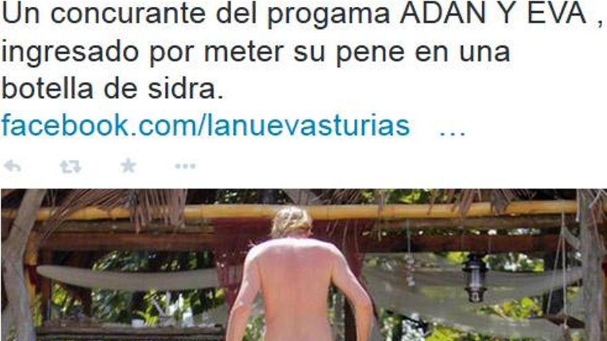 “Un concursante de 'Adán y Eva', ingresado por meter su pene en una botella de sidra”