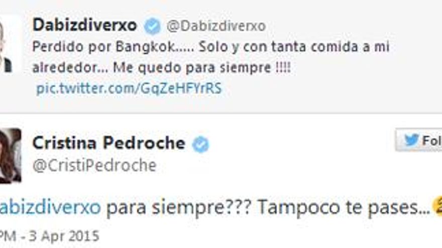 Cristina Pedroche y David Muñoz están pasando la Semana Santa separados. La presentadora se encuentra en Beijing grabando 'Pekín Express' para Antena 3, y el chef se encuentra en Bangkok (Tailandia), también por cuestiones de trabajo.