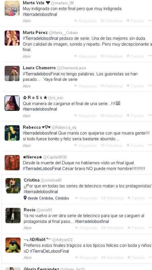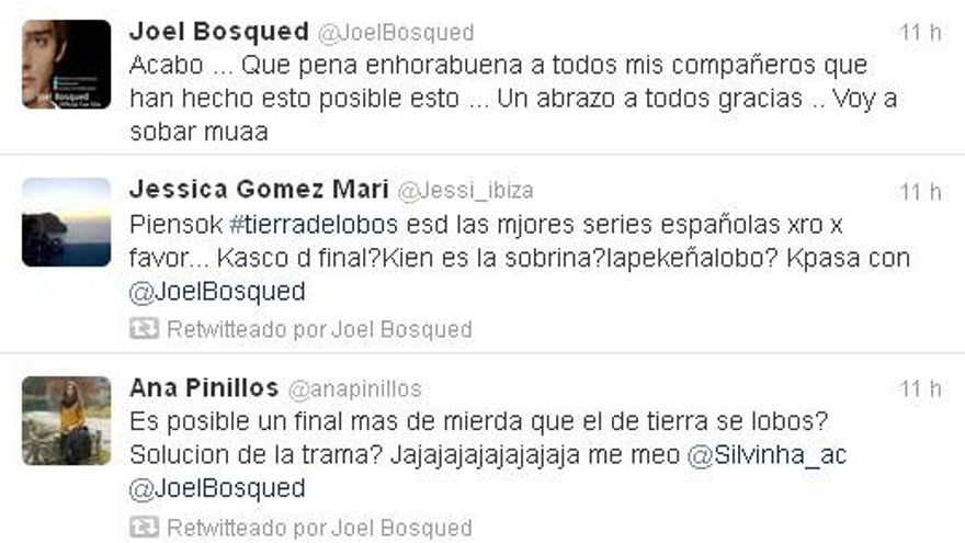 El más duro fue Joel Bosqued, que no dudó en retuitear mensajes que le mandaban seguidores en los que definían el final de la serie como “mierda” y “asco”. Incluso le respondió a una seguidora “ojalá te pudiera contestar ...” cuando ésta le preguntó el “por qué esta basura de final”.