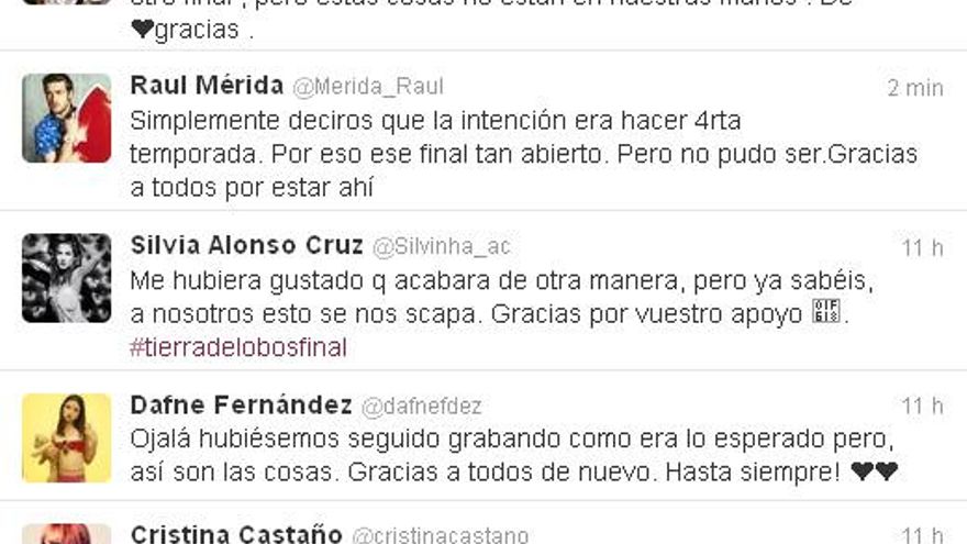 No sólo los fans de la serie han expresado su malestar a través de las redes sociales por el final de la serie. Algunos actores de la ficción de Telecinco como Elisa Matilla, Raúl Mérida, Silvia Alonso, Dafne Fernández o Cristina Castaño también manifestaron su opinión tras la emisión del capítulo y el aluvión de menciones que recibieron de sus seguidores.