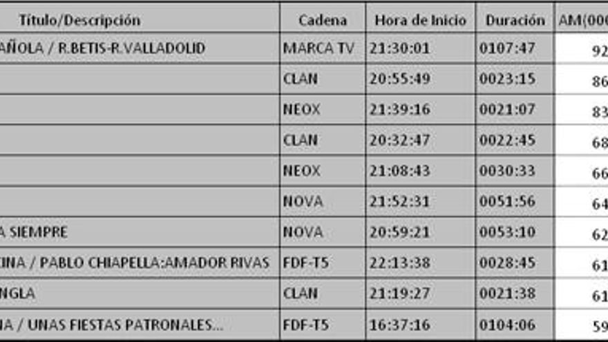 Los 10 programas más vistos en la TDT del lunes