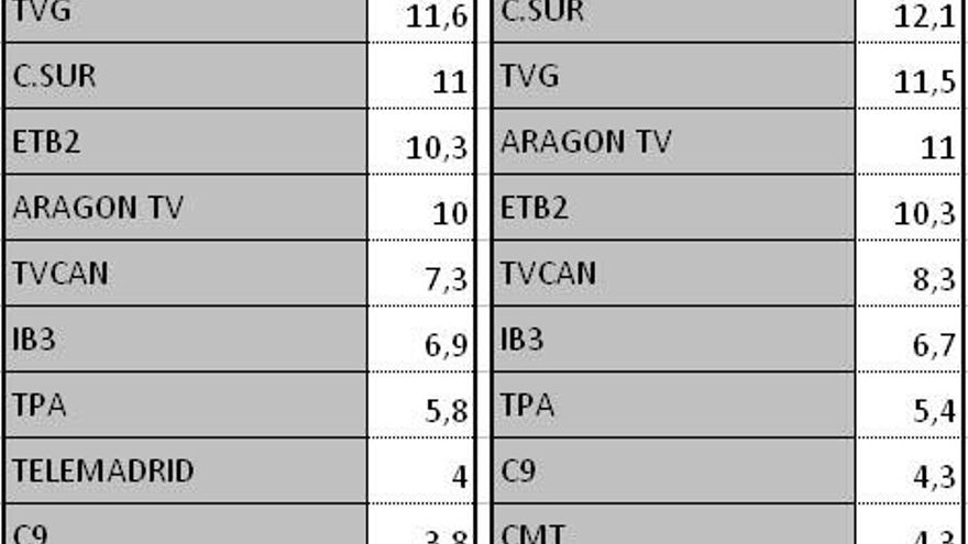 Audiencias autonómicas del lunes