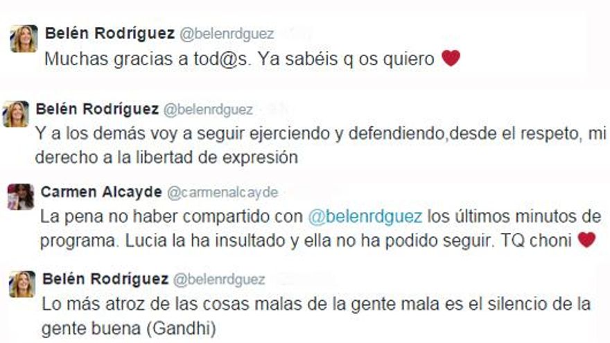 En Twitter, Belén dio las gracias por los apoyos, y dijo que va a seguir defendiendo su derecho a la libertad de expresión. Carmen Alcayde también quiso explicar lo sucedido y comentó que Belén no “pudo seguir”, al verse afectada.