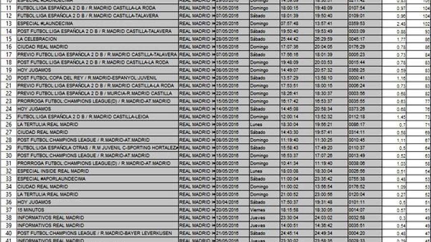 En el canal del club merengue, lo más visto hasta el momento es, como no podía ser de otra manera, el especial emitido este domingo sobre la celebración de la 'Undécima' copa de Champions en el Bernabéu. Al margen de los partidos, entre los formatos más seguidos encontramos 'Hoy jugamos', 'Ciudad Real Madrid' o 'La tertulia' que analizan la actualidad del club.
