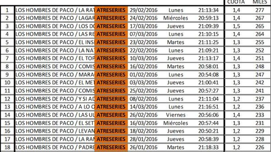 ATRESERIES: “Los hombres de Paco” monopolizan el ranking