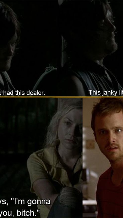 Pero la evidencia más clara, llegó recientemente una vez más de la mano de Daryl. Durante el episodio 12 de la última temporada de 'The walking dead', Daryl habla a Bet acerca de su proveedor de Merle. Quién suena exactamente como Jesse Pinkman.