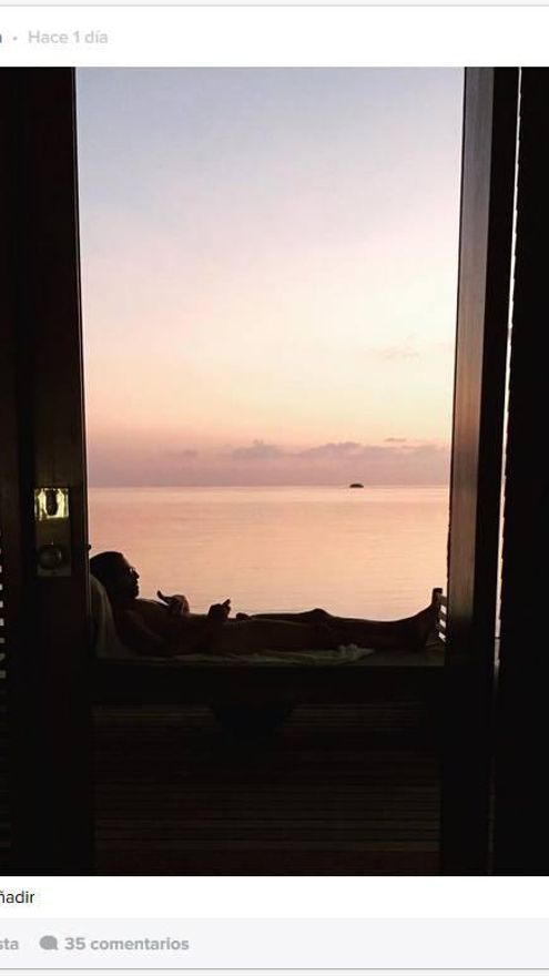 En la imagen, realizada desde el interior de una habitación, Millán aparece reposando en una tumbona y disfrutando de un atardecer junto al mar.