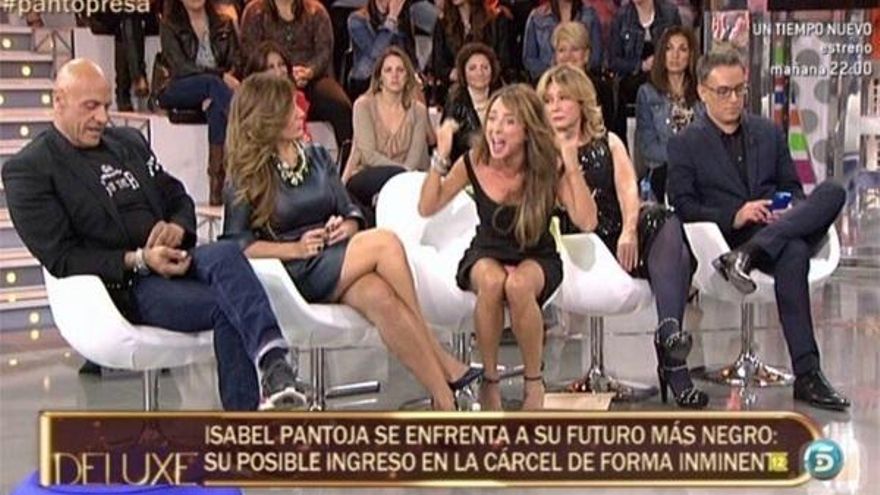 La presentadora y tertuliana estaba tan inmersa en el debate del 'Deluxe' que se le olvidó que llevaba un vestido tan corto que necesitaba mantener las piernas cruzadas. Patiño no se percató de que estaba enseñando las bragas, pero los usuarios de Twitter sí lo hicieron llegando a ser Trending Topic. Tanto que Jorge Javier Vázquez tuvo que decir en directo:“Aviso a Twitter, que está revolucionado: las braguitas de Patiño no son rosas, son color salmón”