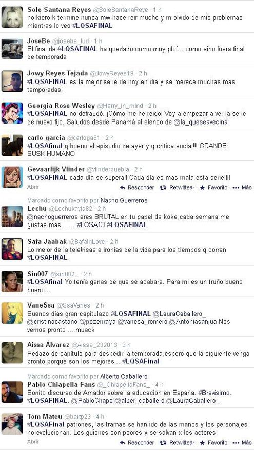 El final de la serie fue por lo general bien recibido en Twitter. Los seguidores de la comedia la despidieron comentándola con el hastag '#LQSAFinal', que se convirtió en Trending Topic nacional, y en el que dejaron sus conclusiones sobre el capítulo y la temporada.