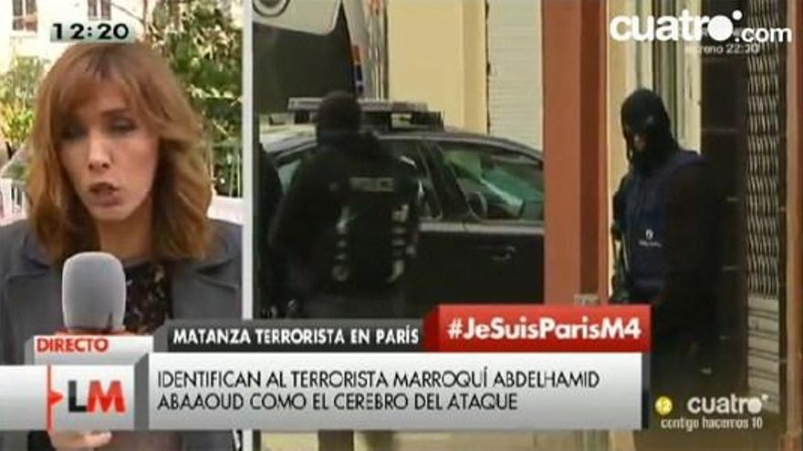 Además, y como en Telecinco, la cadena tiene desplegados a distintos reporteros desde los puntos de mayor interés, entre los que se encuentran Vicente Vallés y Rubén Amón desde París, y el corresponsal de la cadena en Bruselas (Bélgica) Guillermo Pascual, entre otros. En España, Nacho Abad ha acercado la actualidad desde la madrileña estación de Atocha, también como reportero.