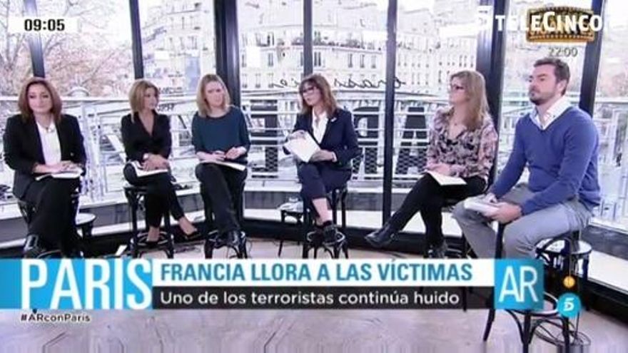 La cadena de atentados en París ha desplazado a los matinales de Antena 3 y Telecinco a la capital francesa, desde donde Susanna Griso y Ana Rosa Quintana están conduciendo 'Espejo Público' y 'El programa de AR'.