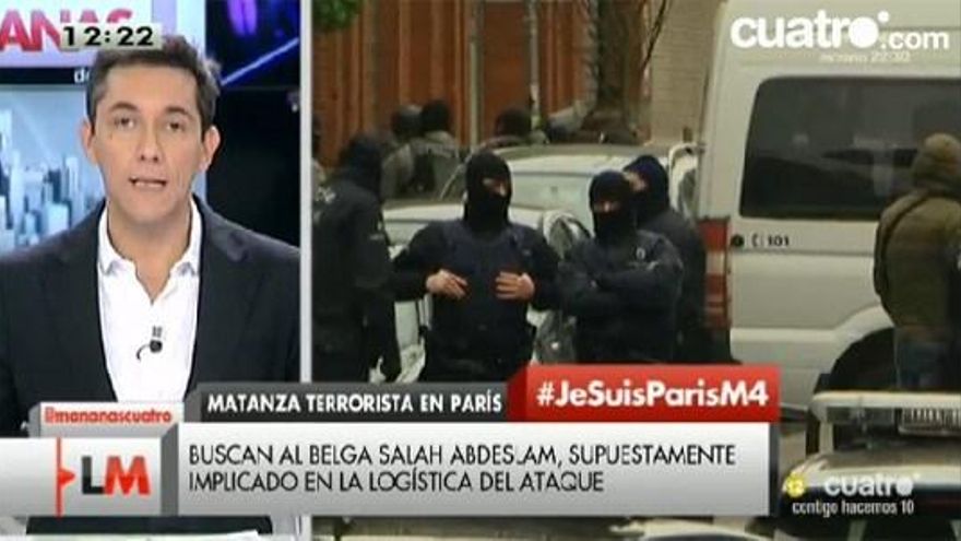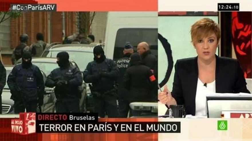 El periodista conduce el programa realizando continuas conexiones en directo y telefónicas con el equipo de reporteros del programa, tanto en París como en Bruselas, donde se han producido detenciones.