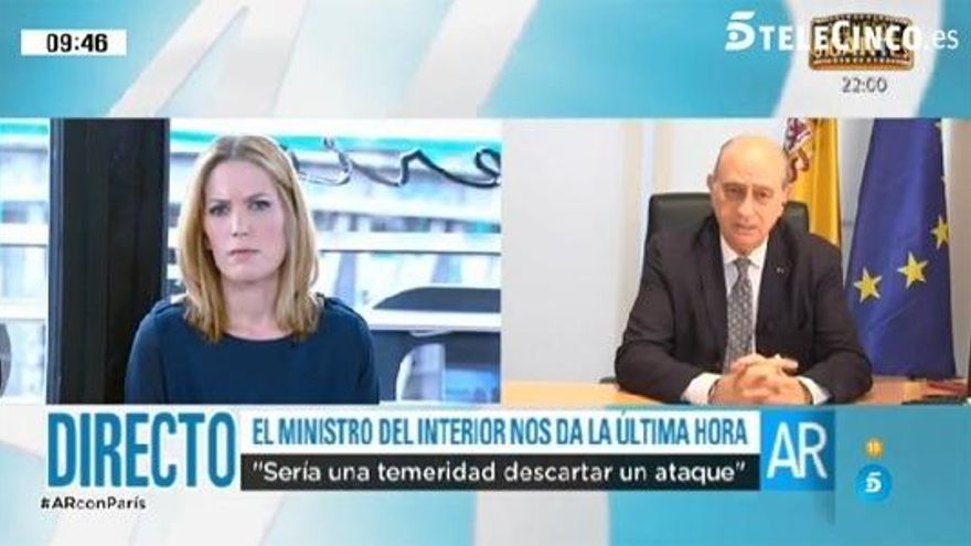 Luego ha entrevistado telefónicamente (y no con conexión en directo como Telecinco y Antena 3) al Ministro de Interior Jorge Fernández Díaz, que ha completado así su presencia en los tres matinales.