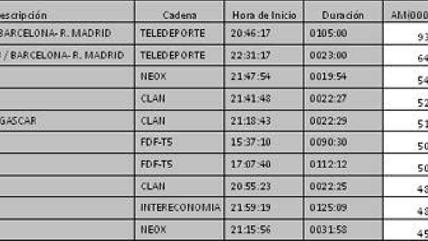 Los 10 programas más vistos del día en TDT