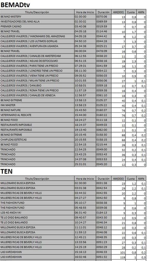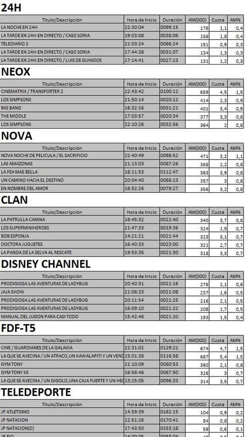Audiencias completas nuevas cadenas de la TDT