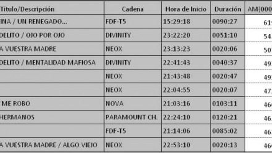 Top 5 programas por cadena