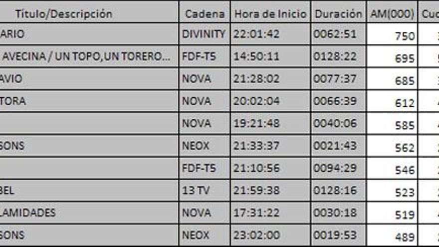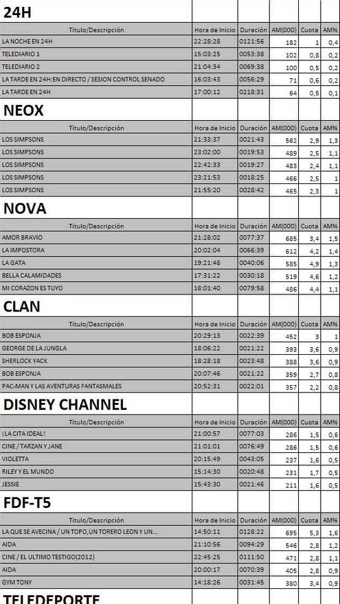 Top 5 programas por cadenas