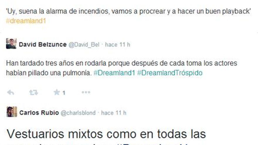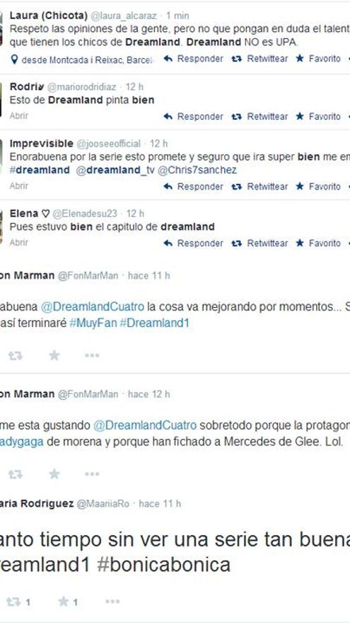 En ese sentido, merece resaltarse la reseña que el portal Ociogay realiza del estreno, en tanto resume los comentarios generados en las redes sociales: “Sí hay que elogiar las coreografías, muy buenas, y la colaboración deNatalia Millán. Pero solo esto no justifica los tres años de trabajo sobreesa idea… ya les gustaría a muchos guionistas y directores de ficción eneste país contar con un margen tan holgado para sus proyectos. Eso sí quesería unDreamland”, concluye el autor, Enrique Espada.