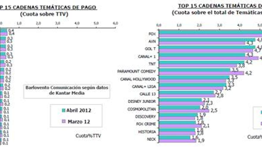 5.- El grupo de las Cadenas Temáticas de Pago (6,6%) bajan una décima