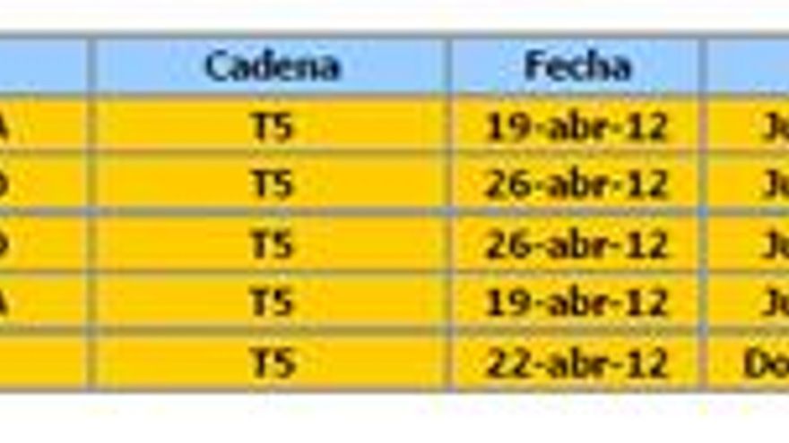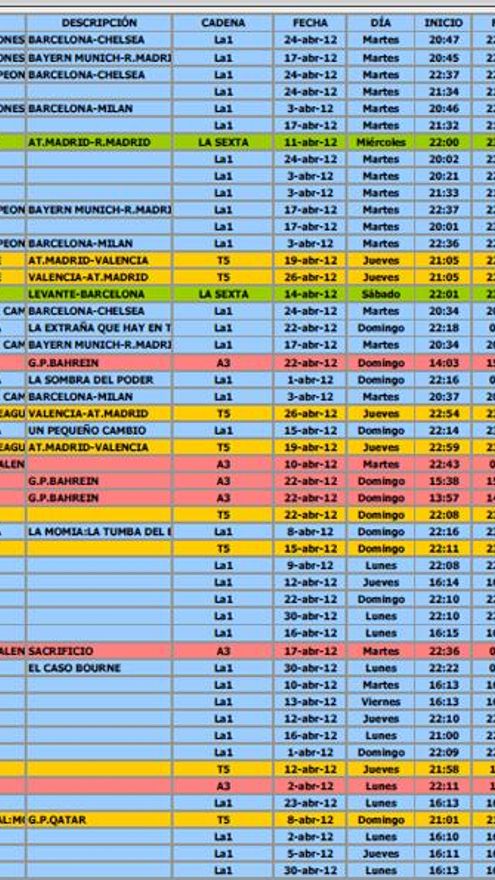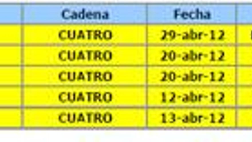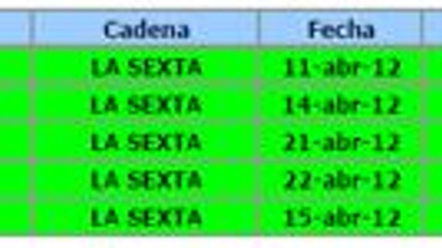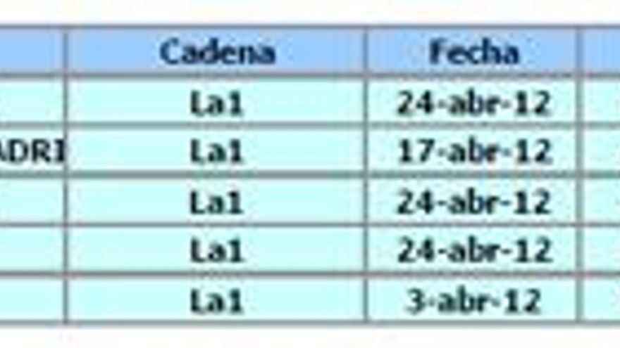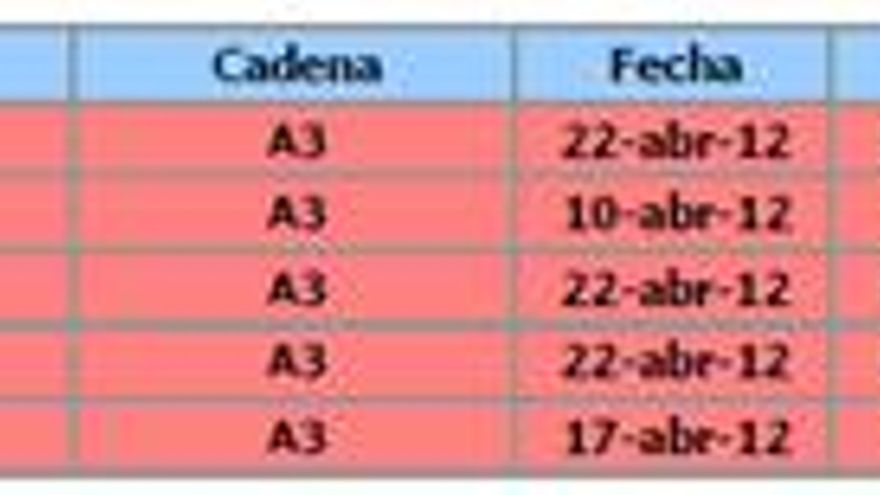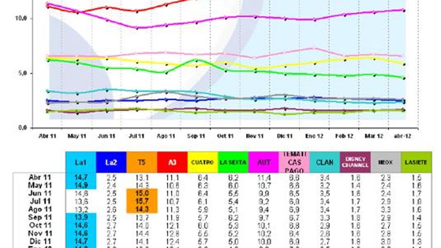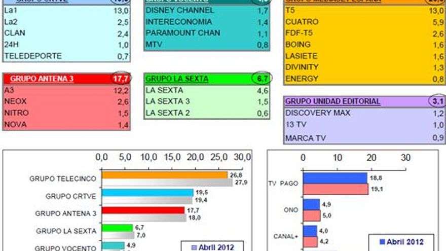 Análisis de audiencia del mes de abril de 2012 elaborado por la Consultora Barlovento Comunicación: