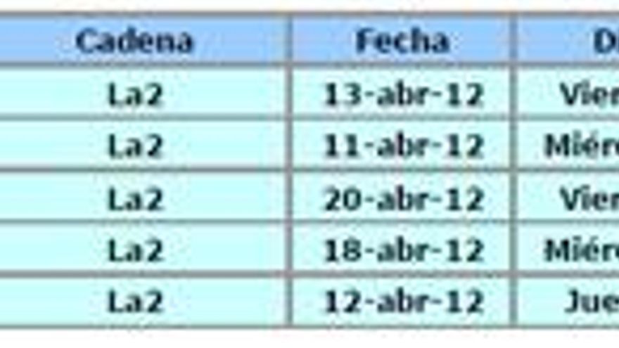 4.- TELEDIARIO 2 - La1 - 24-abr-12 - 44.8% - 9.082.000