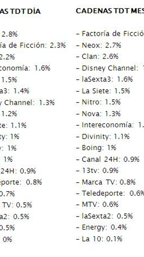 Audiencias TDT 9 de enero
