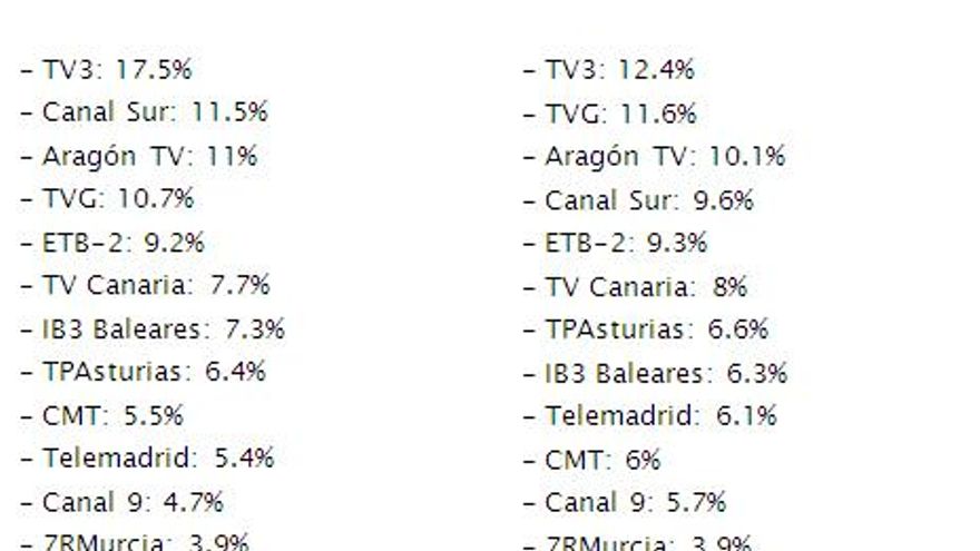 Audiencias de los canales autonómicos (día/mes):