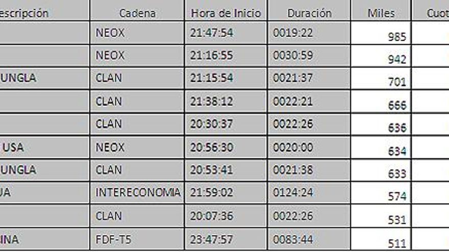 Los 10 programas más vistos