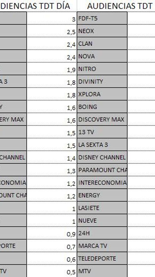 Audiencias TDT y Forta