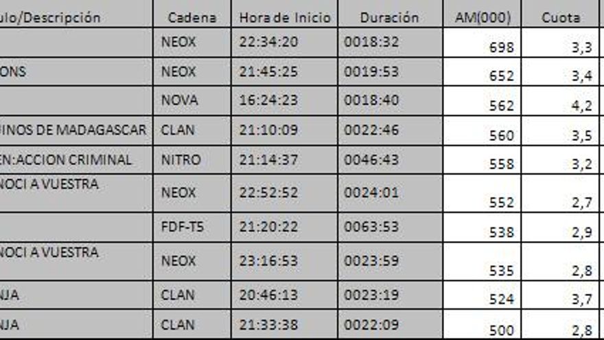 Los 10 programas más vistos del día en la TDT