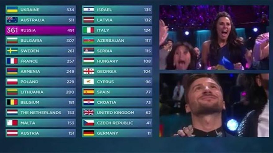Ucrania, con Jamala y su canción '1944', quitaban en el último instante el triunfo a una Australia que se desmarcó en el ranking desde el inicio de las votaciones.